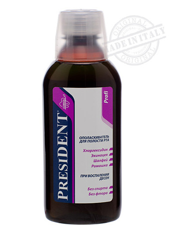 Содержит хлоргексидин, экстракты шалфея, ромашки и эхинацеи. Эффективен как самостоятельное средство, и в комплексе с зубной пастой. При разведении 1:3 может быть использован как жидкость для ирригатора. Проникает во все труднодоступные места.