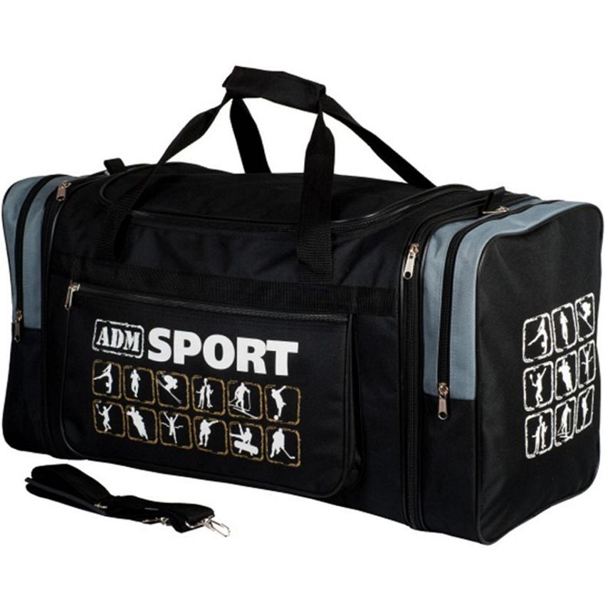 Сумка спортивная, дорожная большого размера серии Классика. Один основной отдел на молнии, накладной карман на передней стенке, два боковых кармана, сумка увеличивается за счет боковых ярусов, усиленная молния, ручкодержатель, регулируемый плечевой ремень. Возможные цвета отделки: хаки, серый, синий, голубой, бардо, красный, оранж.