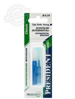 Пять ёршиков в защитном футляре для очистки межзубных промежутков, брекетов, мостов.